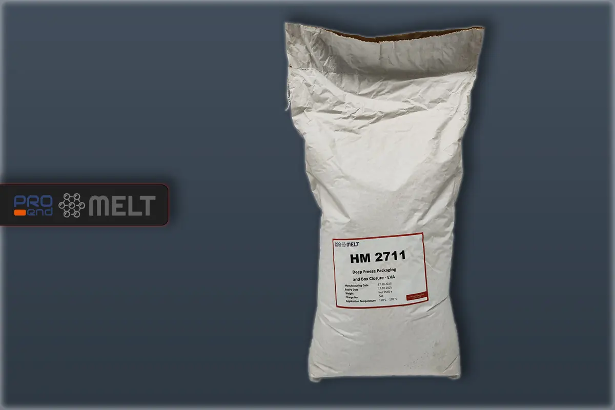 ProEnd Kimya presenta con orgullo HM 2711 Envasado y Cierre de Cajas para Congelación Profunda, diseñado para satisfacer las necesidades de almacenamiento en frío y conservación de la industria alimentaria. Este adhesivo termofusible especializado está formulado para garantizar la frescura y la capacidad de resistir las temperaturas ultra bajas de los productos alimentarios.